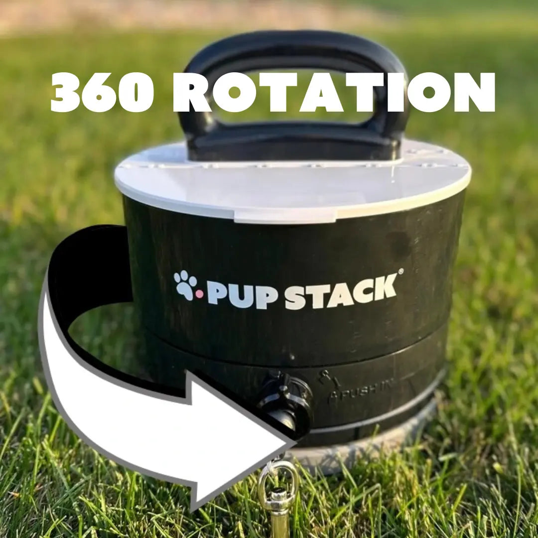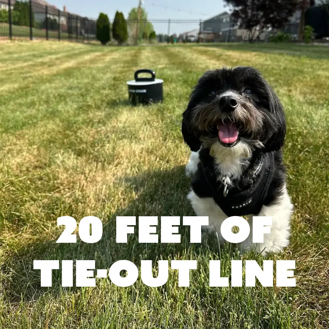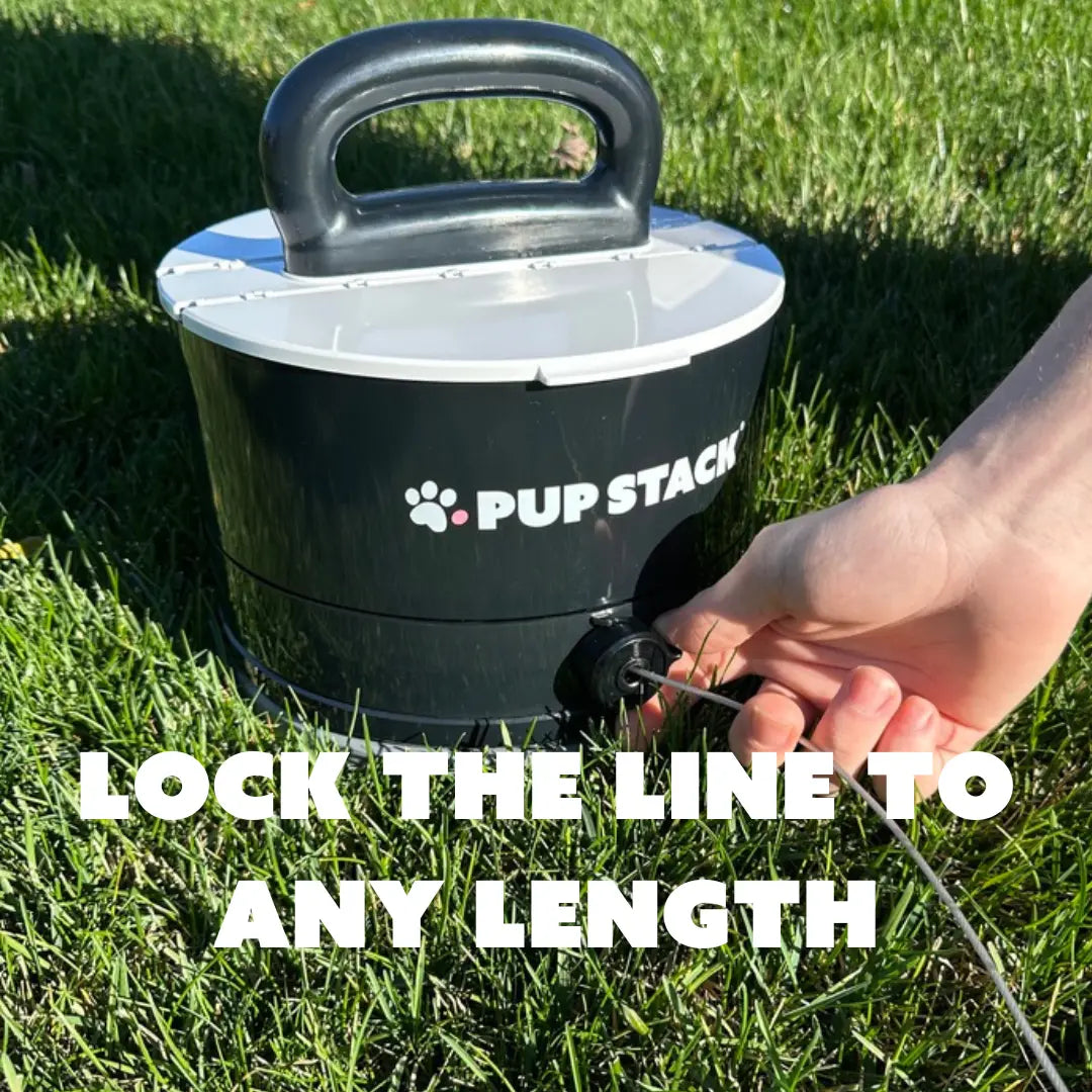 The Pup Stack is incredibly versatile and can be used indoors for temporary purposes such as cleaning house, bringing in groceries, cooking, or if you're having guests over that are not exactly pet-friendly. The Pup Stack is the perfect replacement for gates that are setup to temporarily quarantine your pup since they don't introduce an obstacle in your home. And since the tie-out line on the Pup Stack can be locked in at any length, such as a foot or two, you don't need to worry about tripping on the line. The Pup Stack is not meant to be used indoors for long periods of time and no dog should be left on the Pup Stack unsupervised.