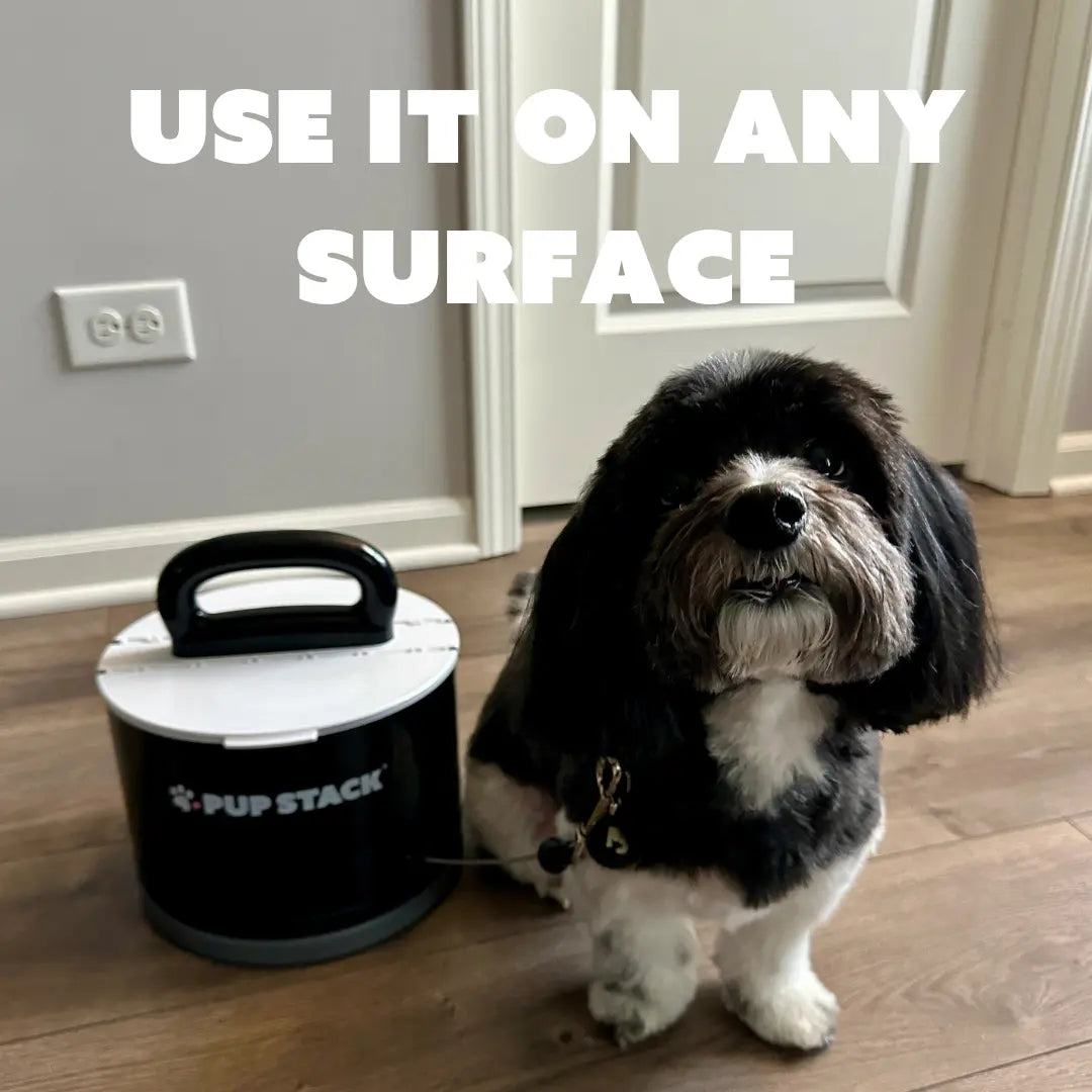 You can use the Pup Stack anywhere. Outdoors, indoors, and on any surface. The bottom of the Pup Stack includes rubber skid pads which serve to add traction to the Pup Stack while also making it safe for hardwood and tile floors. Refer to our Safety Guidelines for more information about using the Pup Stack around obstructions.