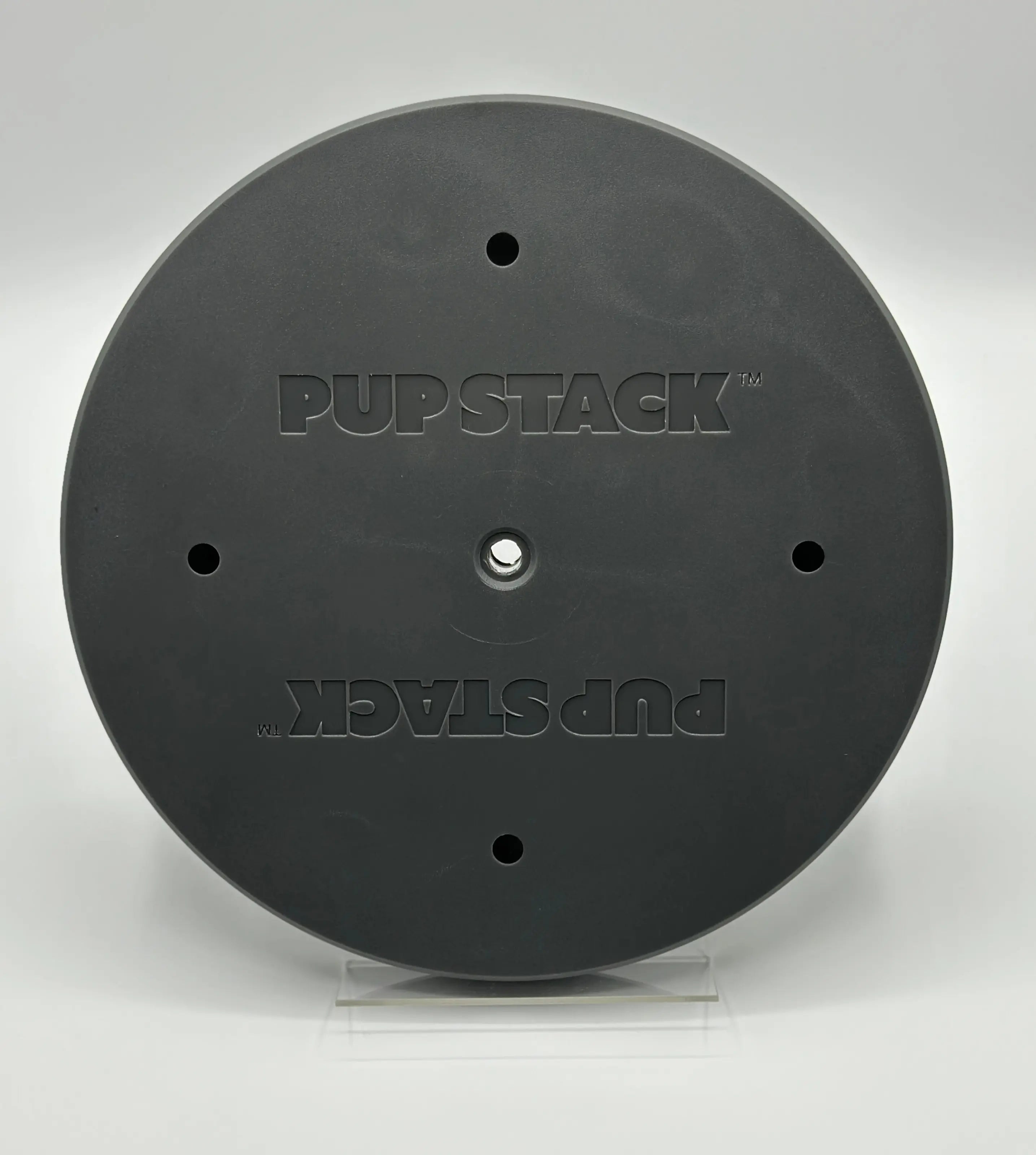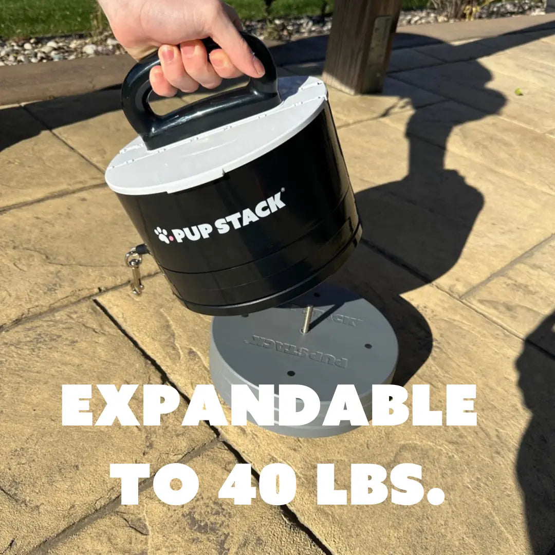 The base Pup Stack comes with a 10 lb. base plate bringing the total weight of the standard Pup Stack to a little over 13 lbs. Additional Pup Stack weight plates can be purchased separately based on your dog's weight and requirements. Please refer to our Pup Stack weight guidelines for more details.