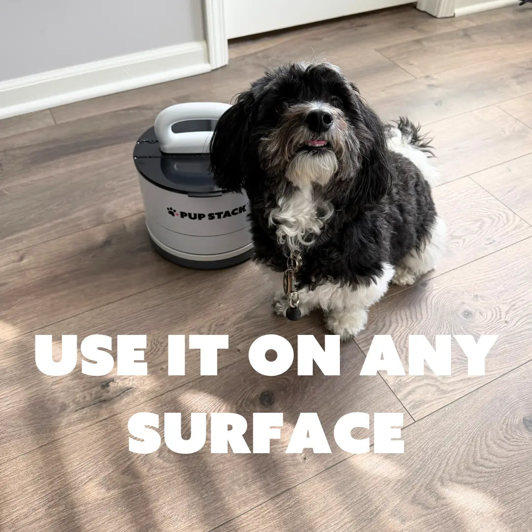 You can use the Pup Stack anywhere. Outdoors, indoors, and on any surface. The bottom of the Pup Stack includes rubber skid pads which serve to add traction to the Pup Stack while also making it safe for hardwood and tile floors. Refer to our Safety Guidelines for more information about using the Pup Stack around obstructions.